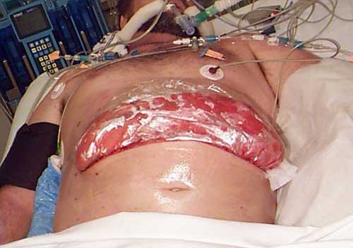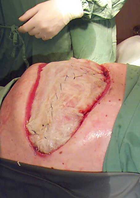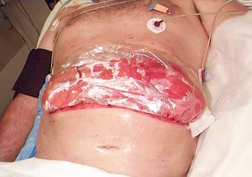 My bowel was put in a plastic bag that split while sneezing in the shower.