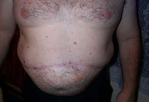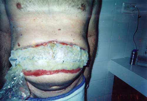 My bowel was put in a plastic bag that split while sneezing in the shower.